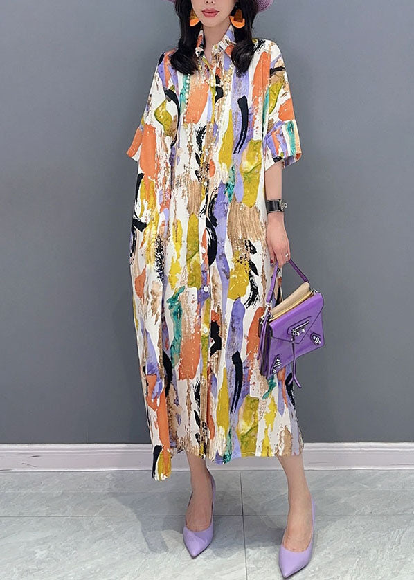 Italian Colorblock Peter Pan Collar Patchwork Cotton Shirts Dress Summer