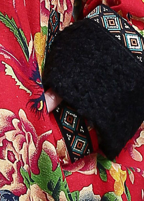 Italian Red Oversized Patchwork Teddy Faux Fur Thick Cotton Dress Gown Winter