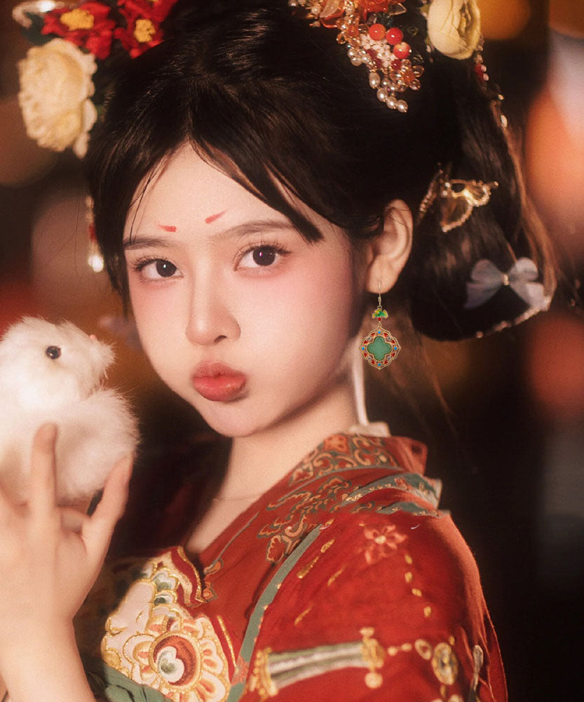 Loose Green Copper Overgild Jade Zircon Turquoise Clover Drop Earrings