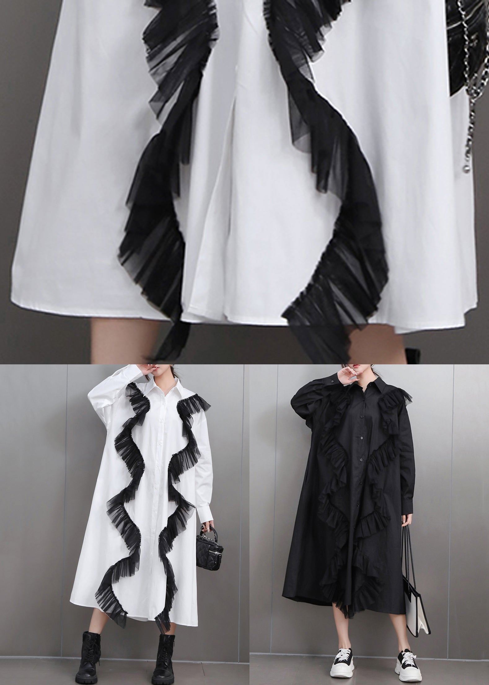 Loose White Pockets Tulle Patchwork Cotton Shirts Dress Fall