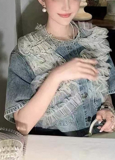 Modern Denim Blue Patchwork Tulle Day Dress Summer