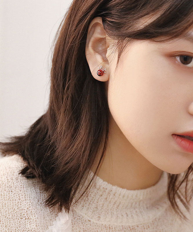 Modern Red Sterling Silver Garnet Antler Stud Earrings