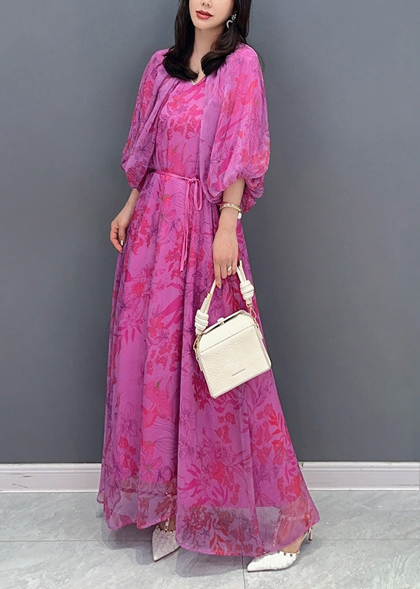 Modern Red V Neck Print Cozy Tie Waist Ankle Dress Summer