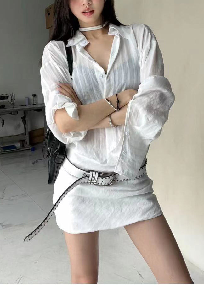 New Black Peter Pan Collar Button Cotton Shirts Mid Dress Long Sleeve