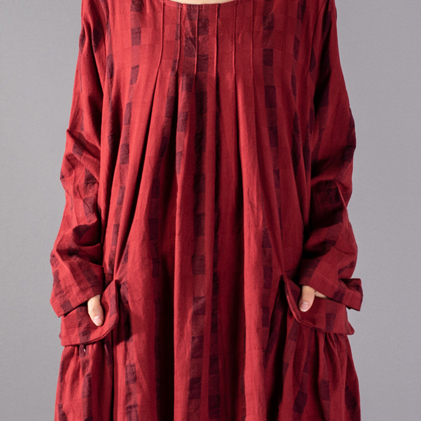 New black Plaid plus size clothing o neck baggy fall dresses 2018 pockets maxi dresses
