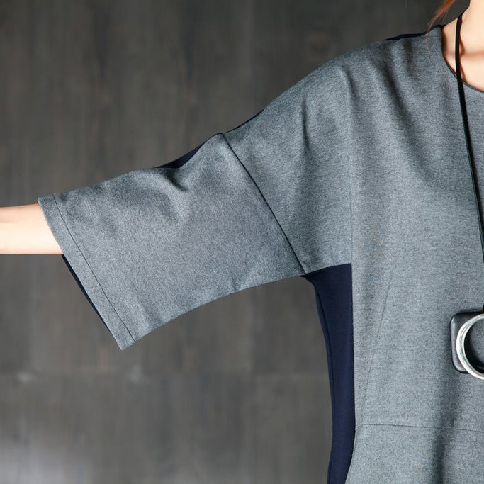 New cotton knee dress plus size clothing Cotton Short Sleeves Women Splicing Dress