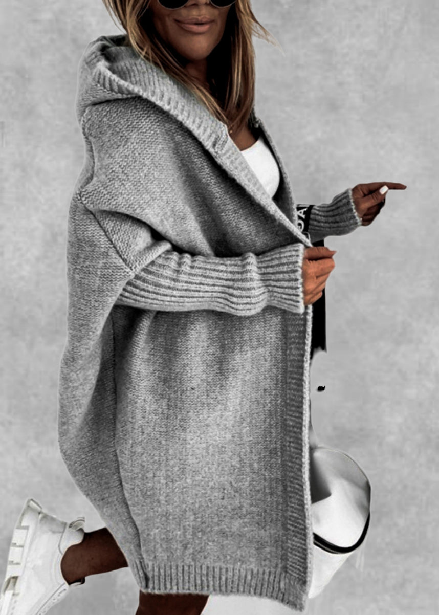 New Mint Green Hooded Patchwork Knit Cardigan Fall