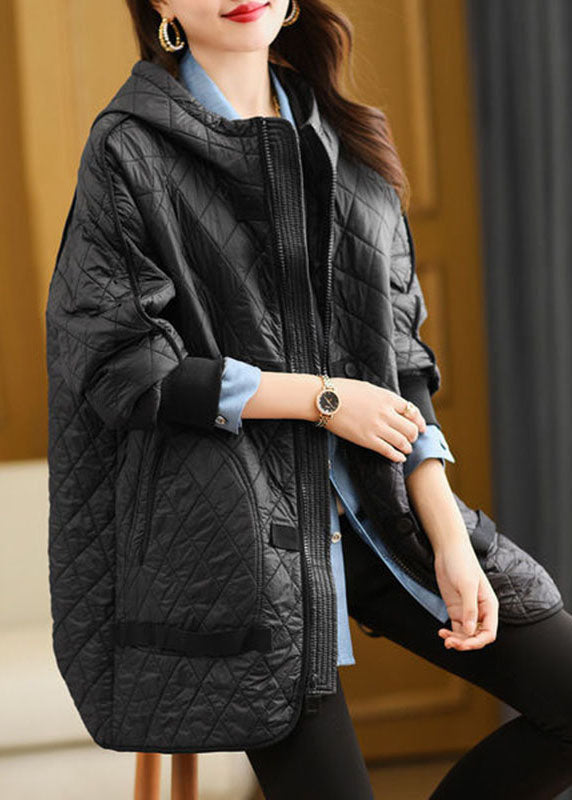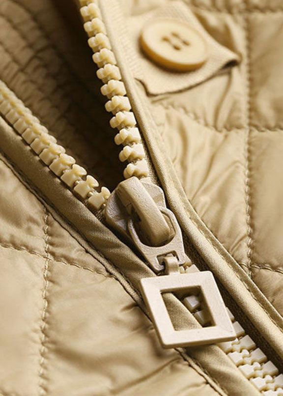 Organic Khaki Plaid Zippered Drawstring Fine Cotton Filled Hoodie Down Jackets Winter