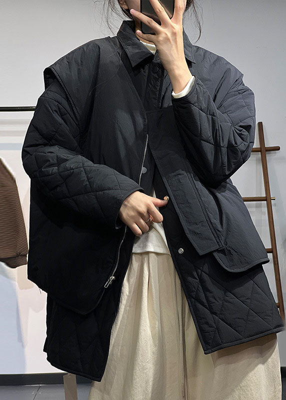 Original Design Black Oversized Thick Fine Cotton Filled Two Piece Set Women Clothing Winter