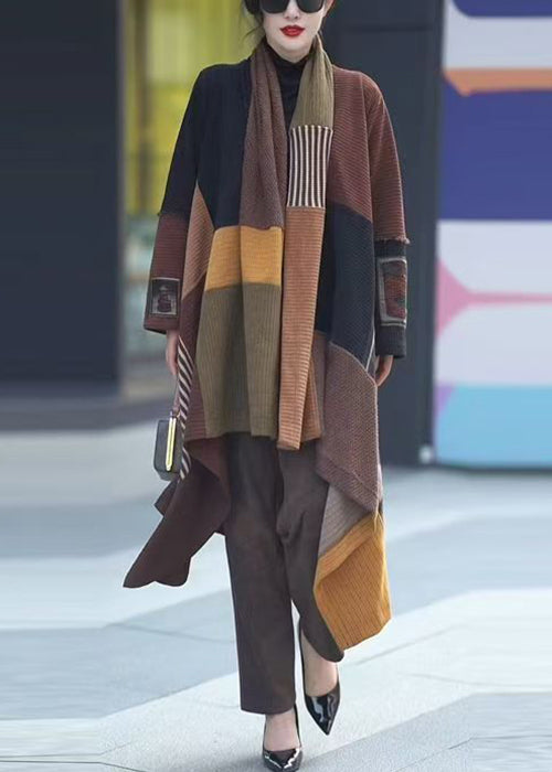 Original Design Coffee V Neck Patchwork Cotton Cardigans Winter