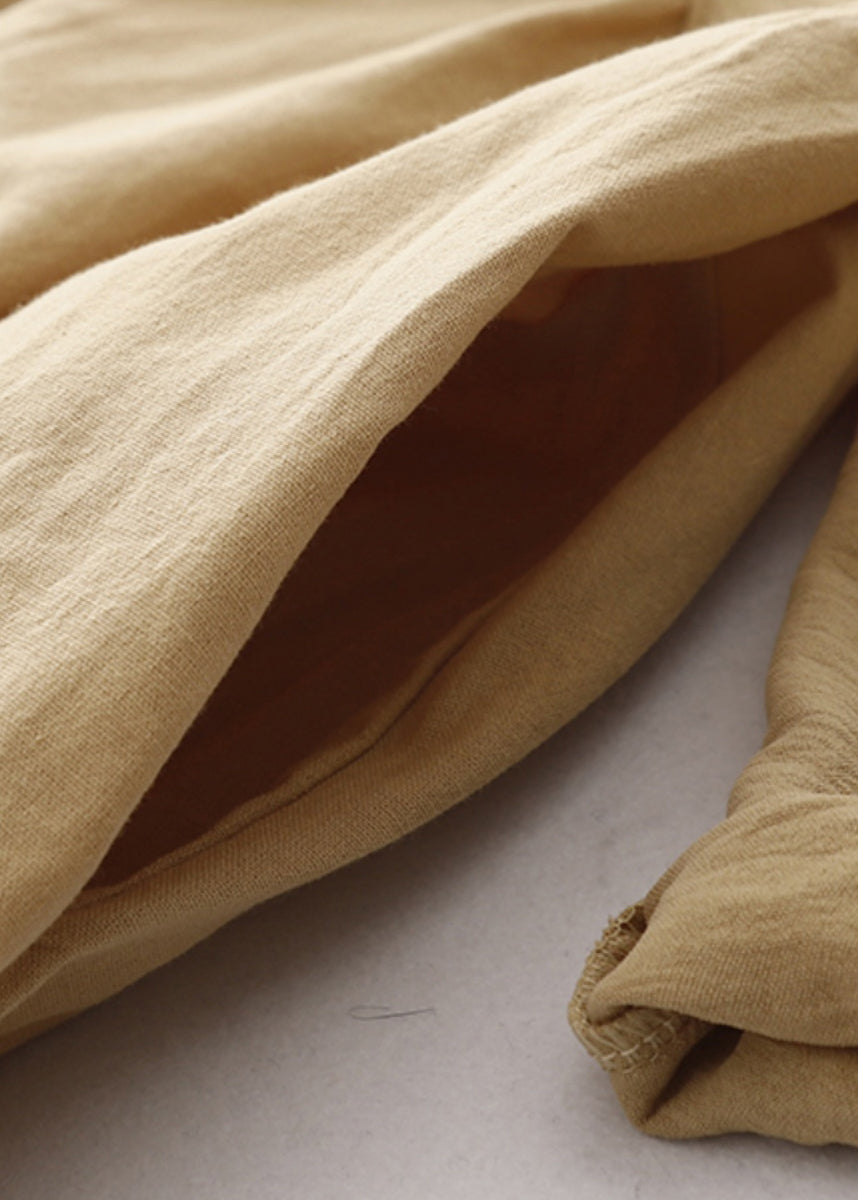 Original Khaki Peter Pan Collar Pockets Patchwork Cotton Dresses Spring