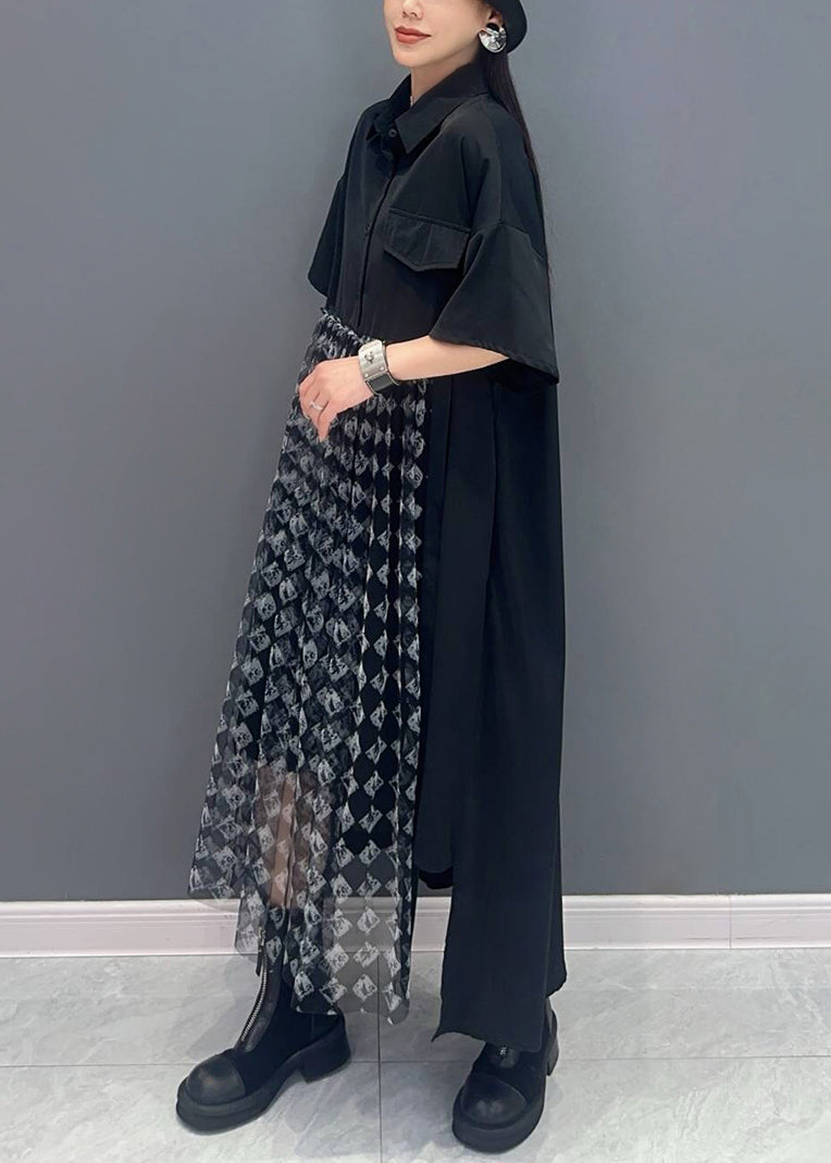 Plaid Pockets Tulle Patchwork Dresses Peter Pan Collar Short Sleeve