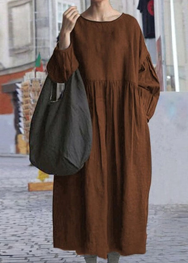 Plus Size Black O Neck Wrinkled Patchwork Cotton Dress Spring