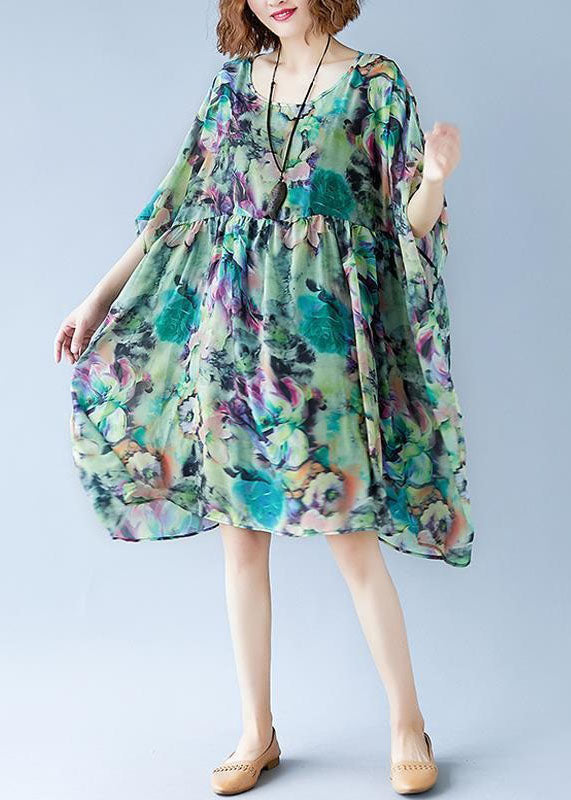 Plus Size Green O Neck Print Patchwork Chiffon Dresses Summer