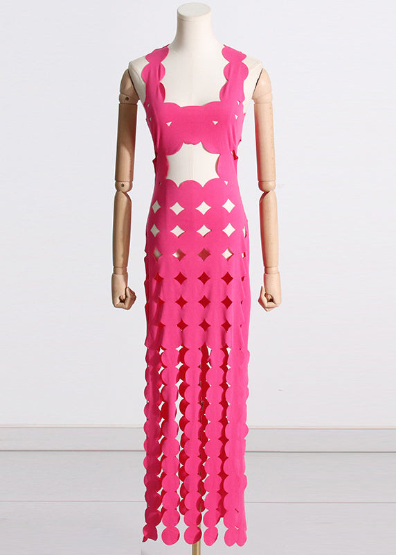 Sexy Black Hollow Out Backless Cotton Spaghetti Strap Dress Sleeveless