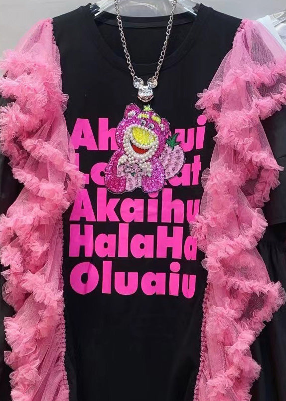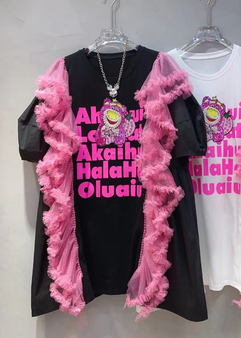 Sexy White O-Neck Alphabet Tulle Patchwork Nail Bead Cotton Mid Dress Summer