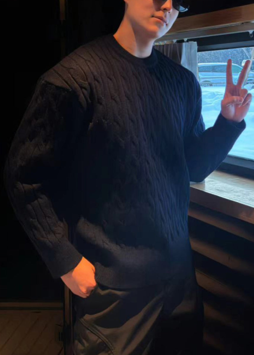 Simple Black O Neck Cable Knit Men Sweaters Spring