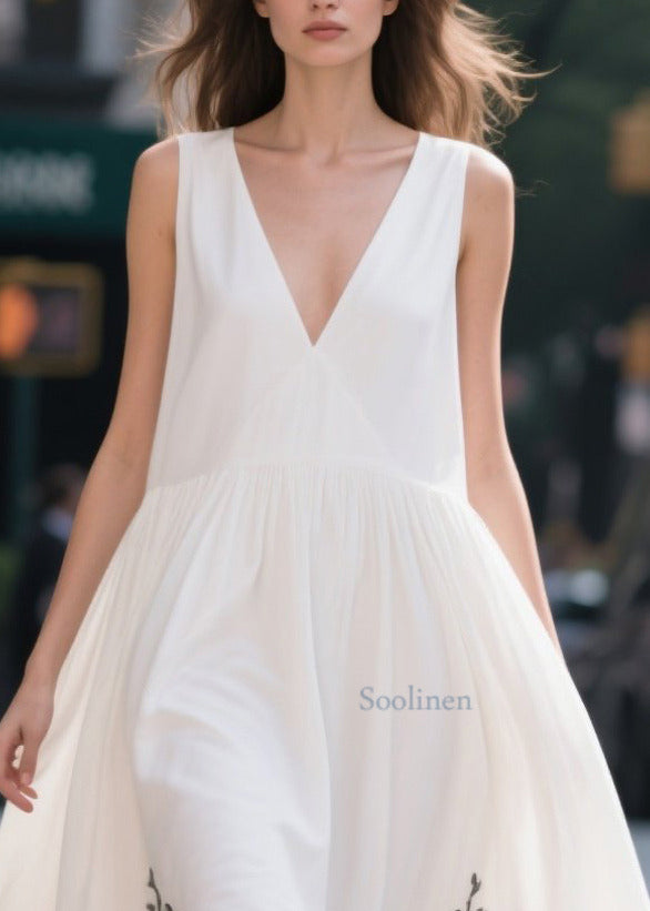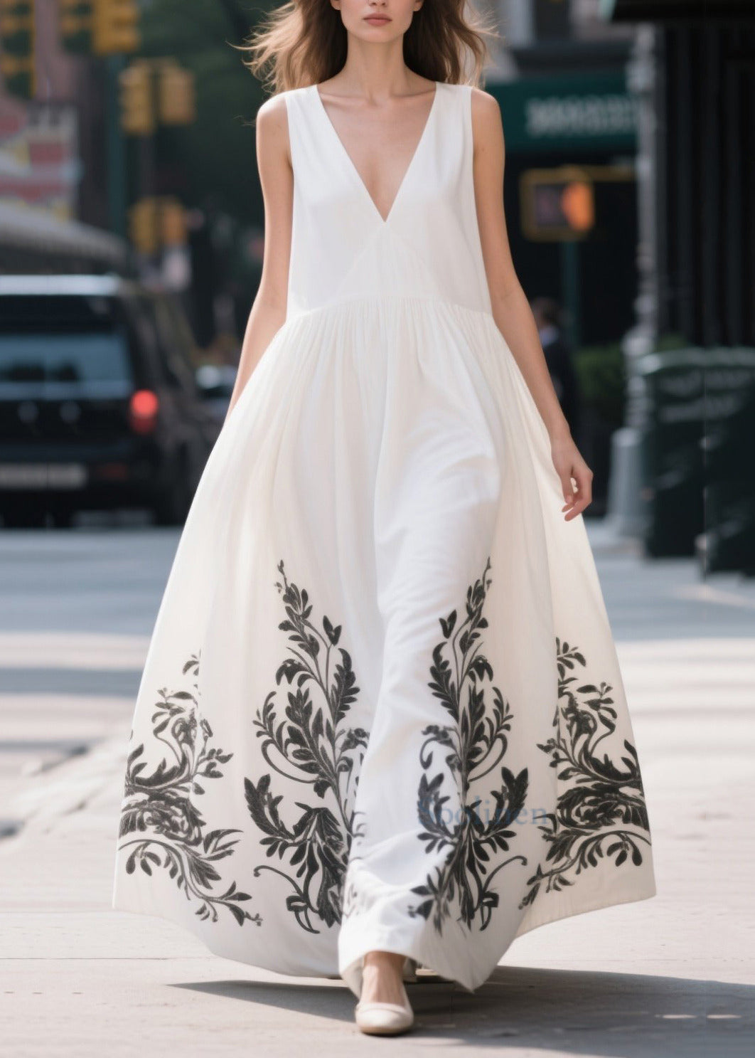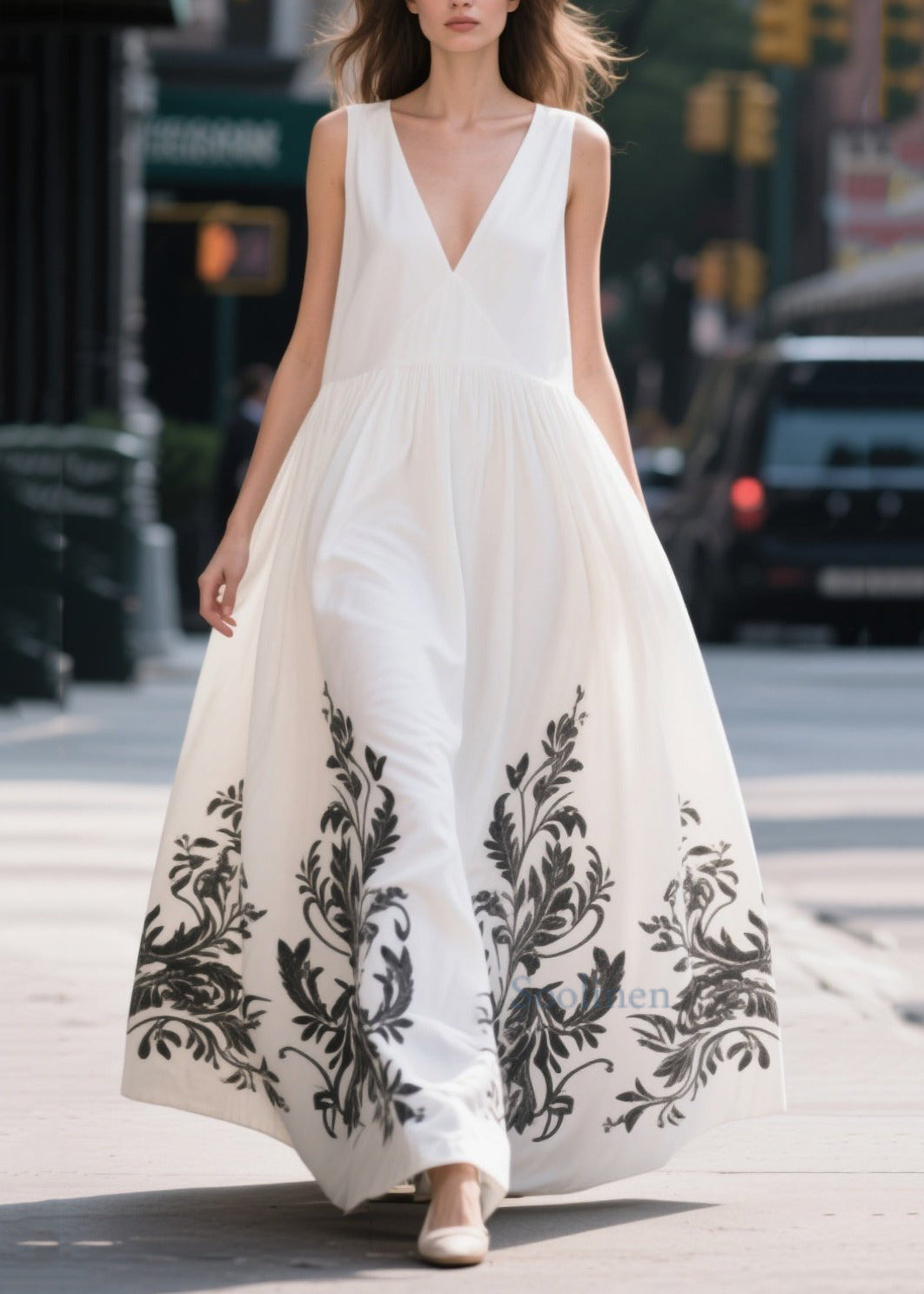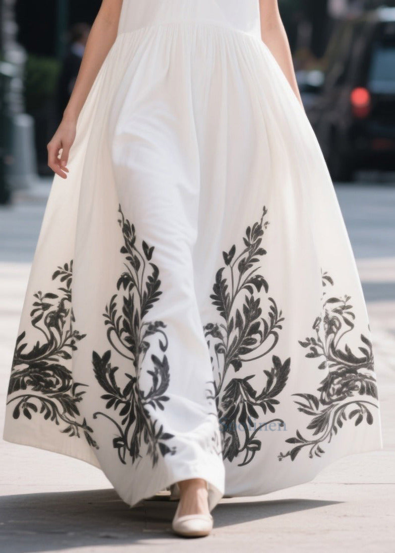 Simple White Print Exra Large Hem Cotton Party Dress Summer