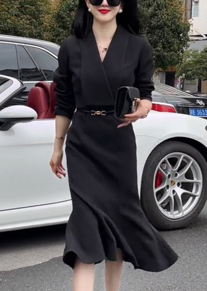 Slim Fit Camel V Neck High Waist Patchwork Spandex Dress Fall