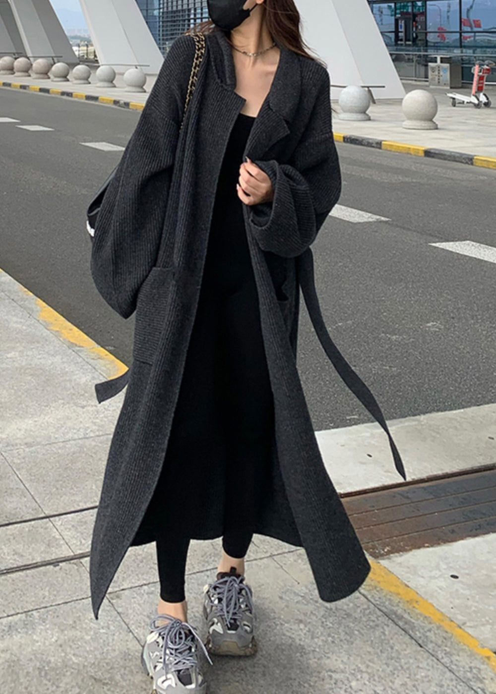 Style Beige Peter Pan Collar Tie Waist Knit Loose Cardigans Winter