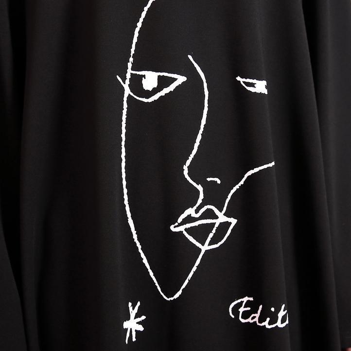 stylish black natural oversized linen cotton dress zippered baggy 2018 O neck midi dress