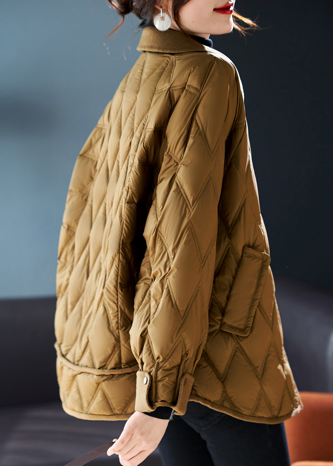 Stylish Coffee Peter Pan Collar Patchwork Duck Down Down Coat Winter
