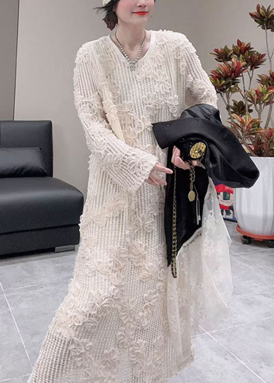 Stylish Khaki O Neck Floral Design Cotton Dress Fall