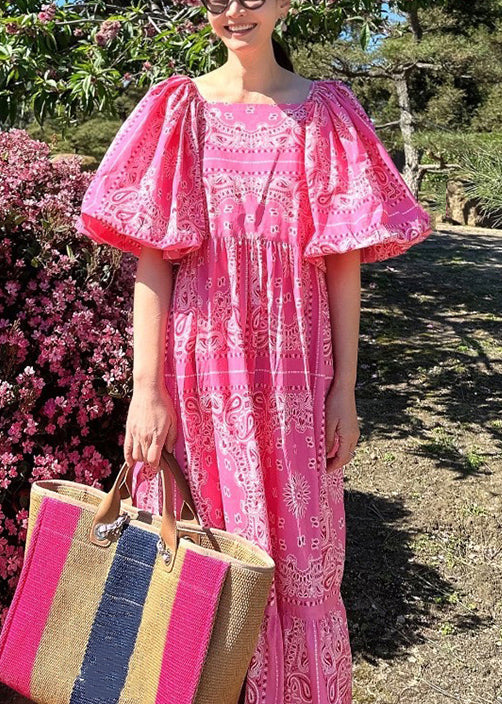 Stylish Navy Square Collar Print Cotton Dresses Puff Sleeve