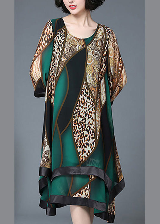 Stylish Red O-Neck Asymmetrical Print Patchwork Layered Maxi Dress Spring