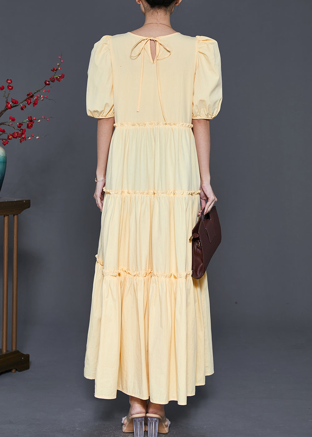 Stylish Yellow Ruffled Puff Sleeve Cotton Dresses Summer