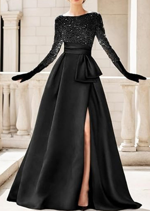 Stylish Yellow Sequins Side Open Patchwork Ankle Dress Spring