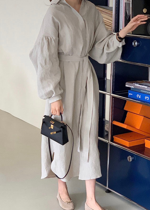 Unique Light Grey Peter Pan Collar side open shirts Dress Spring
