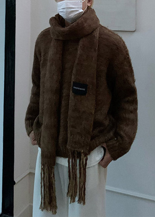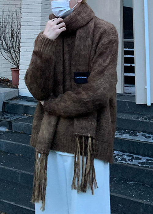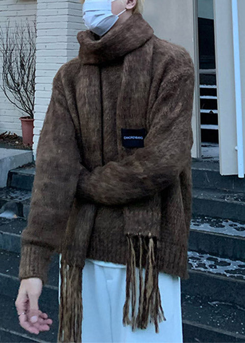 Vintage Coffee Scarf Cozy Thick Cozy Knit Men Sweaters Winter