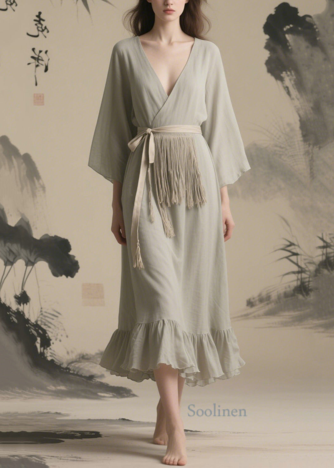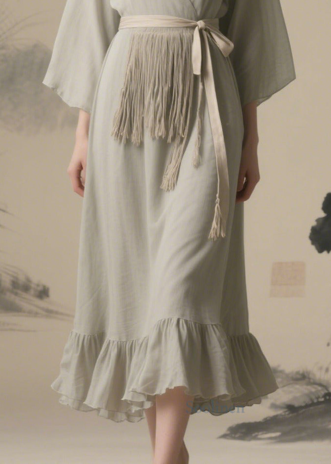 Vintage Grey Tasseled Chiffon Tunic Dresses Summer