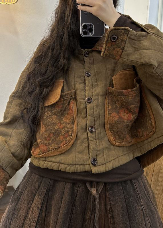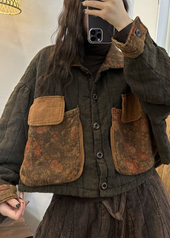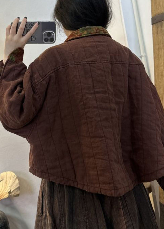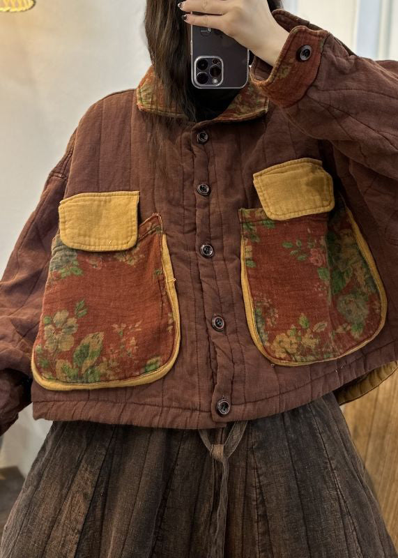 Vintage Wine Red Button Pockets Patchwork Cotton Coats Fall