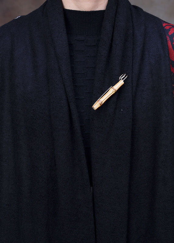 Women Black Bow Collar Floral Print Loose Long Cardigans Long Sleeve