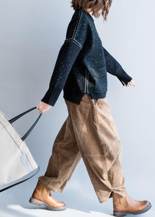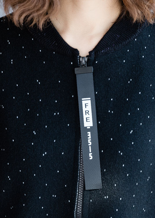 Women Black Zip Up Dot Woolen Knit Coat Winter