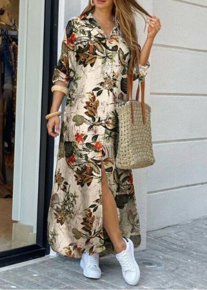 Women Green Peter Pan Collar Tie Dye Chiffon Shirts Dresses Long Sleeve