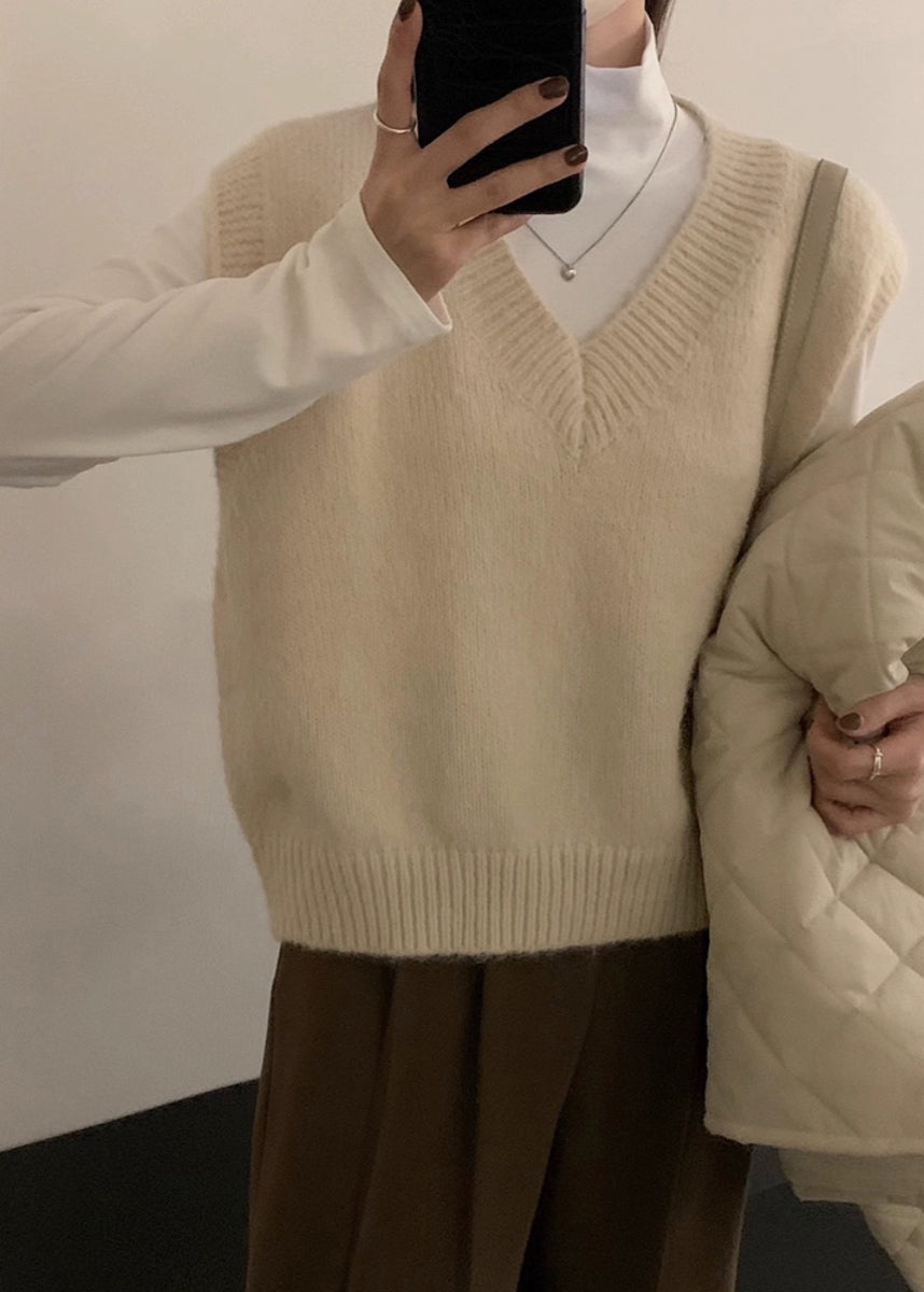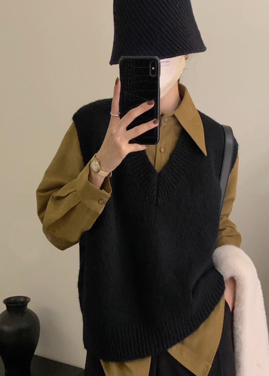 Women Grey V Neck Cozy Knit Vest Tops Sleeveless