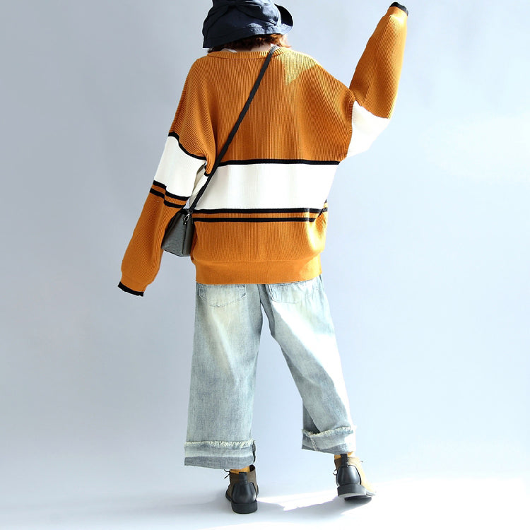 2017 autumn yellow white patchwork cotton knitted tops plus size neck front open sweater