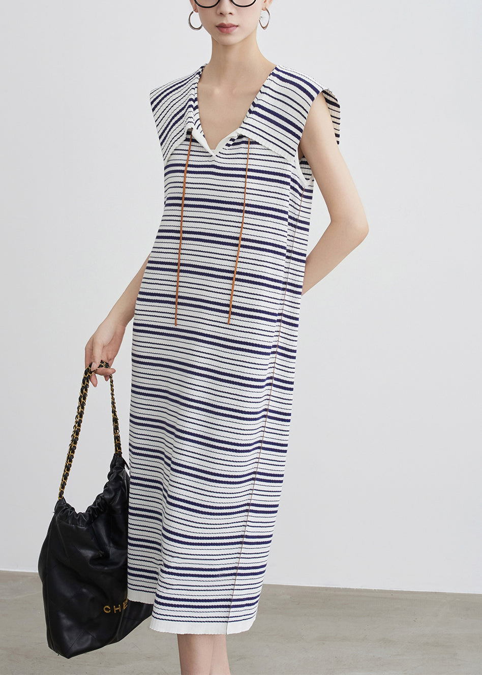 Art Blue Striped Cozy Knit Long Dress Sleeveless