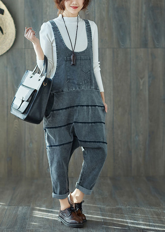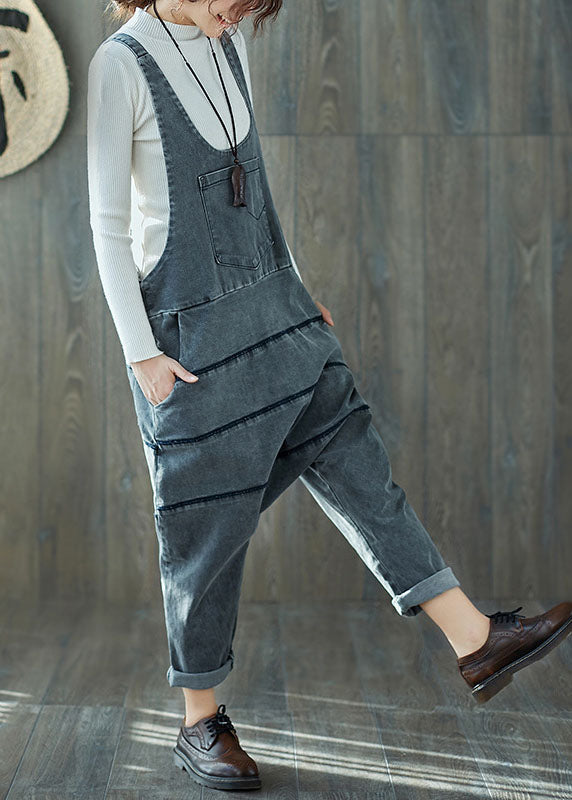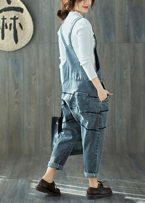Art Grey Oversized Patchwork Cotton Denim Jumpsuit Spring