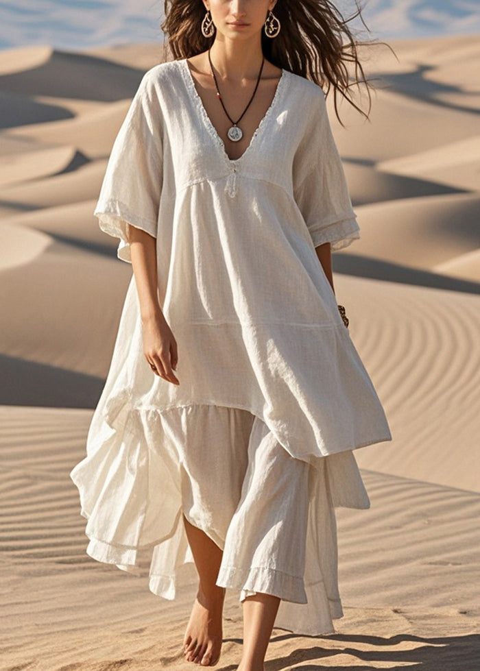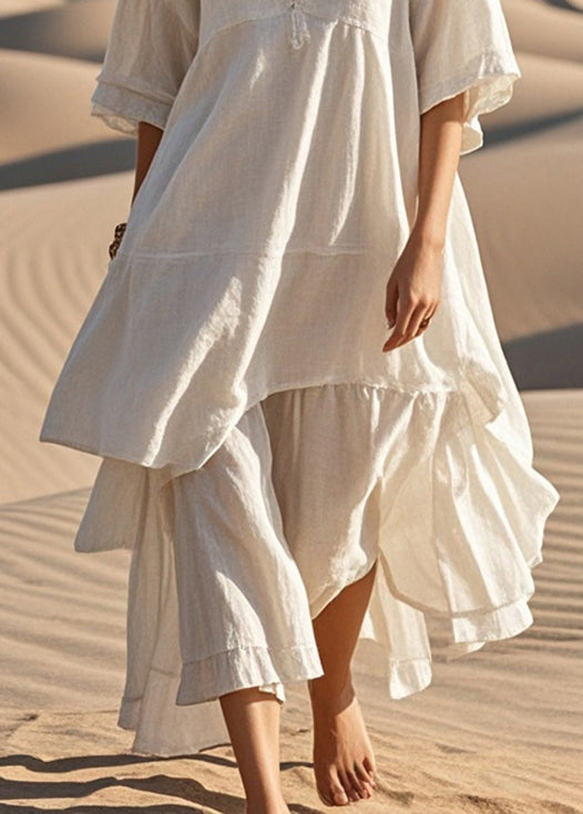 Art White Patchwork Cotton Holiday Dress Asymmetrical Summer