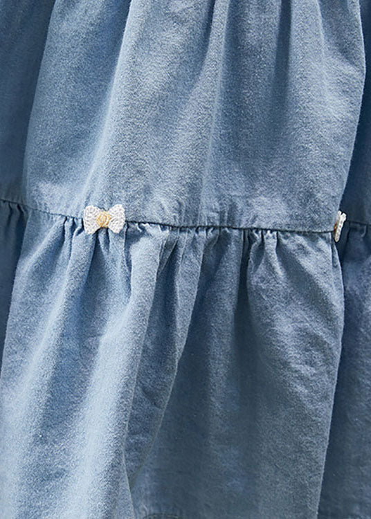 Beautiful Blue Ruffled Patchwork Denim Kids Girls Long Dress Summer
