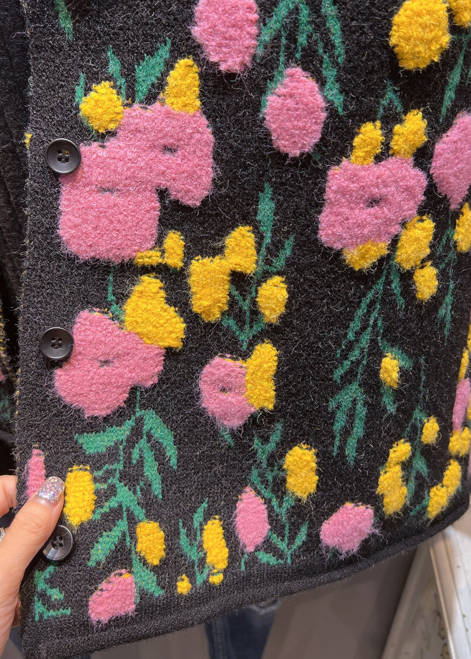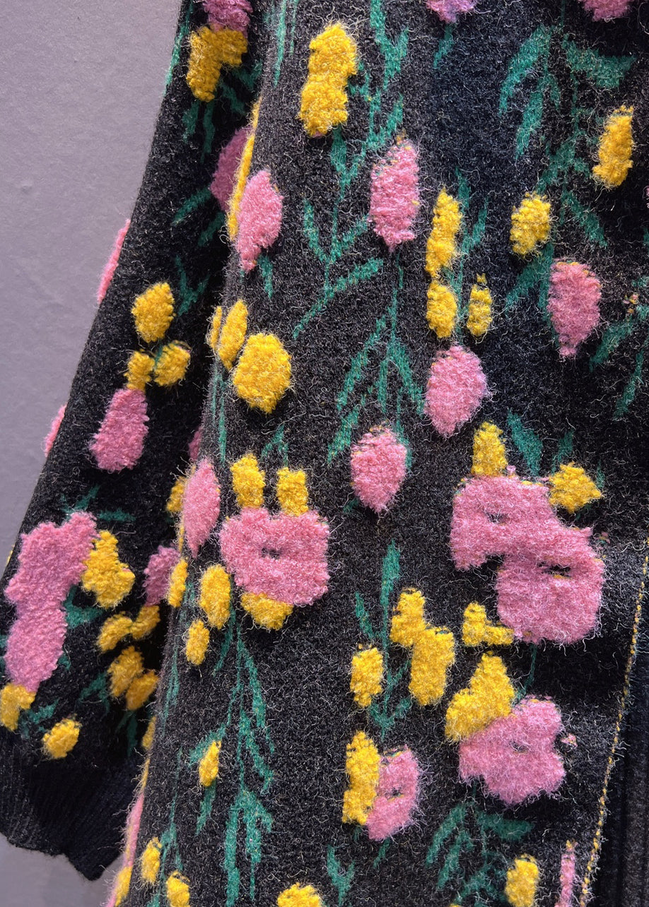 Black Cozy Patchwork Loose Knit Coat O-Neck Spring