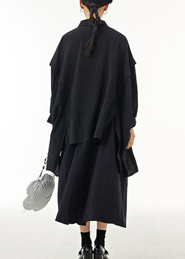 Black Patchwork Cotton Blouse Tops Peter Pan Collar Spring