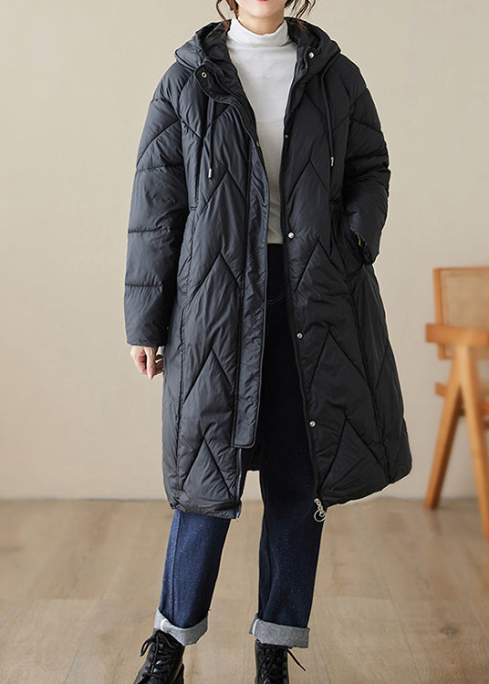 Black Pockets Patchwork Fine Cotton Filled Hooded Coat Zip Up Winter