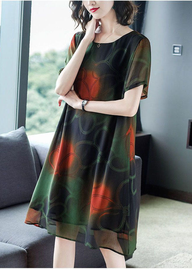 Blackish Green Print Chiffon Long Dress Oversized Summer