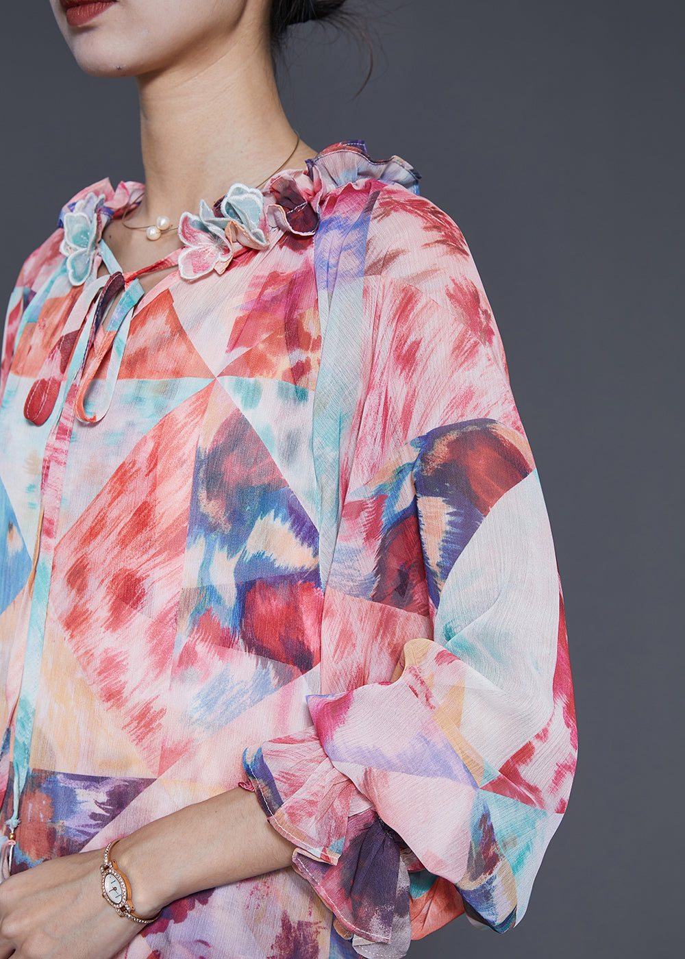Bohemian Orange Ruffled Print Chiffon Mid Dress Spring