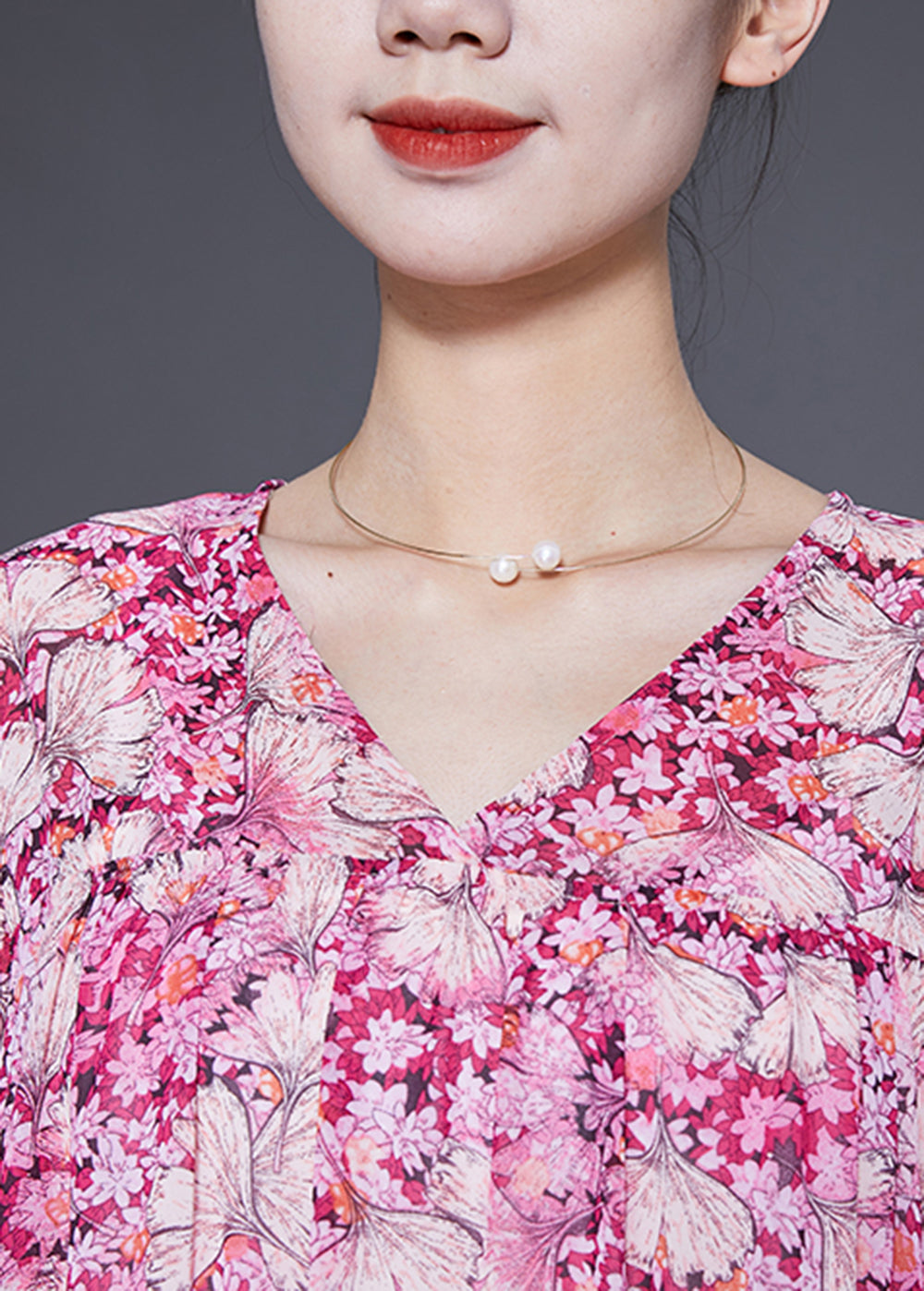 Bohemian Pink Oversized Print Drawstring Silk Vacation Dresses Spring